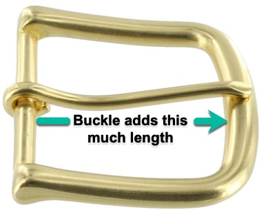 It is important that the inside length of the buckle be included in the measurement. Please do not assume the size shown on your current belt is correct.